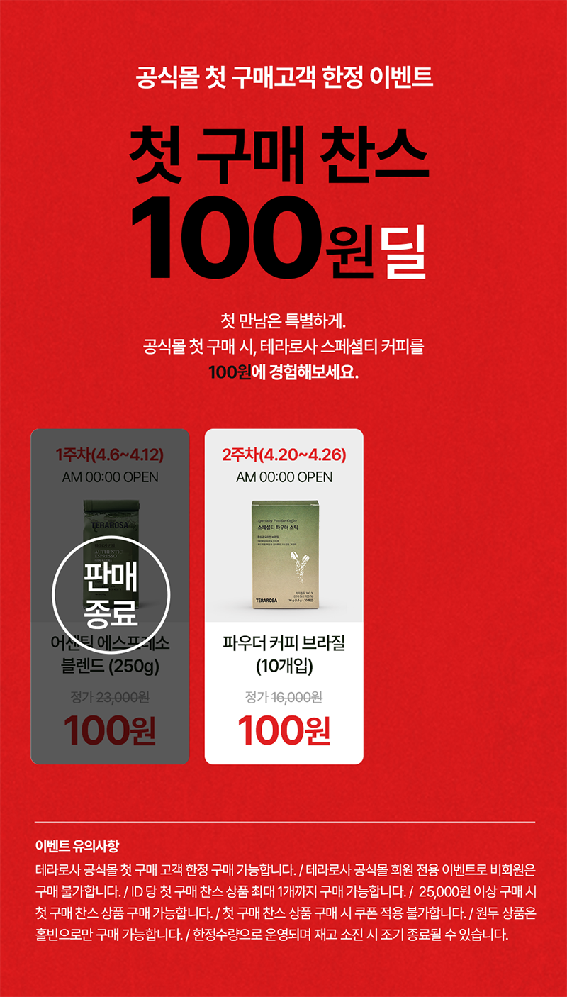 · 원두, 드립백 : 테라로사는 최상의 커피 품질 유지를 위해 로스팅 일자를 표기하고, 표기된 날짜 이후의 상품만 출고합니다.